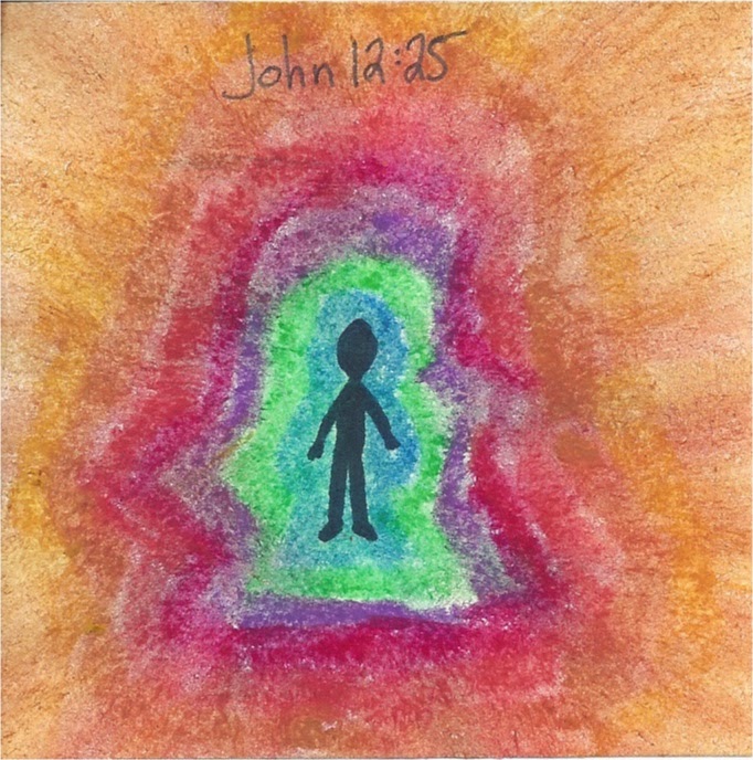 John 12:25 (the darkened figure with all the color pouring out)